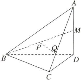 巩固练习2 如图,在四面体A - BCD中,AD⊥平面BCD,BC⊥CD,AD = 2,BD = 2$\sqrt{2}$.M是AD的中点,P是BM的中点,点Q在线段AC上,且AQ = 3QC.证明:PQ//平面BCD.