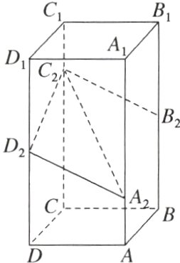 则C(0,0,0),C2(0,0,3),B2(0,2,2),D2(2,0,2),A2(2,2,1),所以$\overrightarrow{B_{2}C_{2}}$=(0,-2,1),$\overrightarrow{A_{2}D_{2}}$=(0,-2,1),可得$\overrightarrow{B_{2}C_{2}}$=$\overrightarrow{A_{2}D_{2}}$,即向量$\overrightarrow{B_{2}C_{2}}$与$\overrightarrow{A_{2}D_{2}}$共线,又B2C2,A2D2不在同一条直线上,所以B2C2//A2D2.