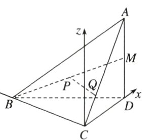 证明:因为BC⊥CD,AD⊥平面BCD,故以C为原点,CD为x轴,CB为y轴,过点C作DA的平行线为z轴,建立如图所示的空间直角坐标系