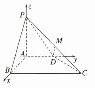 以$A$为坐标原点,$AB,AD,AP$所在直线分别为$x$轴,$y$轴,$z$轴建立空间直角坐标系,如图所示.