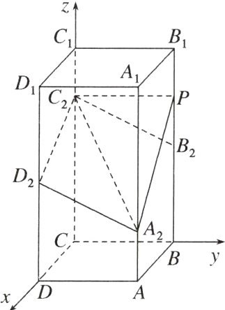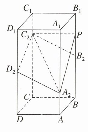 则$\overrightarrow{A_{2}C_{2}}=(-2,-2,2)$,$\overrightarrow{PC_{2}}=(0,-2,3 - \lambda)$,$\overrightarrow{D_{2}C_{2}}=(-2,0,1)$; (5分)→设点写出向量的坐标