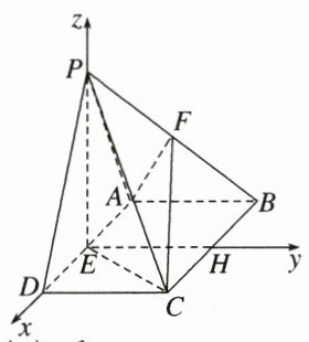 以$E$为坐标原点,$ED$所在直线为$x$轴,取$BC$中点$H$,$EH$所在直线为$y$轴,$EP$所在直线为$z$轴建立空间直角坐标系,