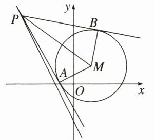 例2 (1)已知圆M:x²+y²-2x-2y=2,直线l:2x+y+2=0,P为l上的动点,过点P作圆M的切线PA,PB,切点分别为A,B,当四边形PAMB面积最小时,|PM|的值为 ( )
