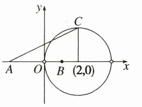 圆$C:(x - 4)^2 + y^2 = 4$,可得$C(4,0)$,