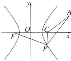 0),则|PF|−|PC|=2a=4,|AC|=5,