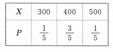 $\therefore E(X)=300\times\frac{1}{5}+400\times\frac{3}{5}+500\times\frac{1}{5}=400$(元)。