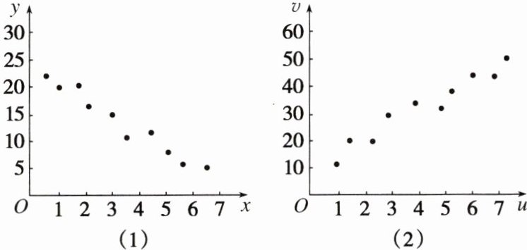 跟踪训练2 对变量x,y有观测数据(xi,yi)(i = 1,2,…,10),得散点图如图(1);对变量u,v有观测数据(ui,vi)(i = 1,2,…,10),得散点图如图(2).由这两个散点图可以判断 ( )