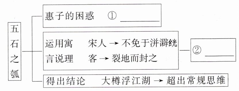 (1)惠子用“大瓠之种”的事例,意在讥讽庄子的学说大而无用,没有任何实际的用途,说明庄子的理论是不会被众人认可接受的。