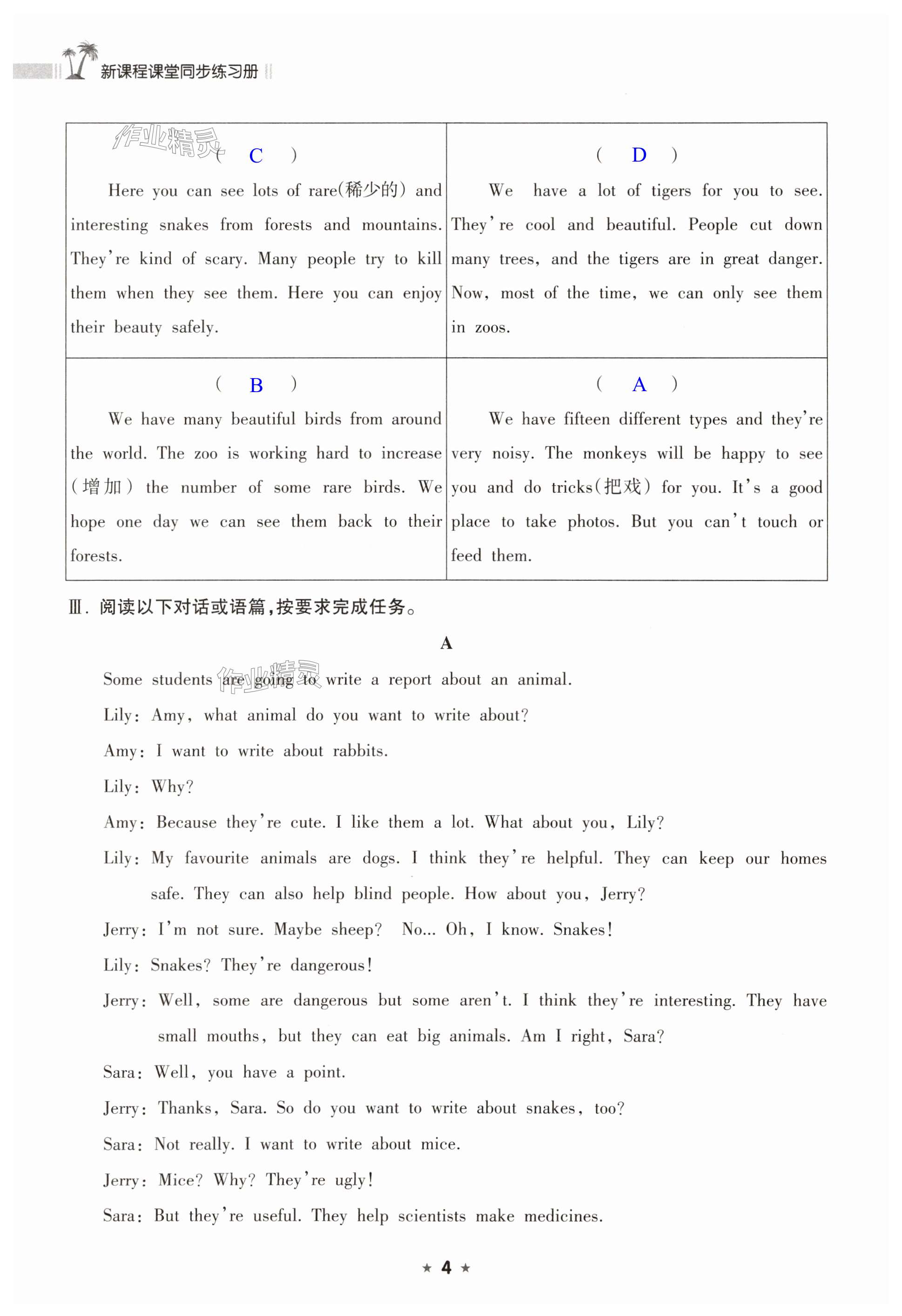 注:目前有些书本章节名称可能整理的还不是很完善,但都是按照顺序排列的,请同学们按照顺序仔细查找。练习册 2025年新课程课堂同步练习册七年级英语下册人教版 答案主要是用来给同学们做完题方便对答案用的,请勿直接抄袭。