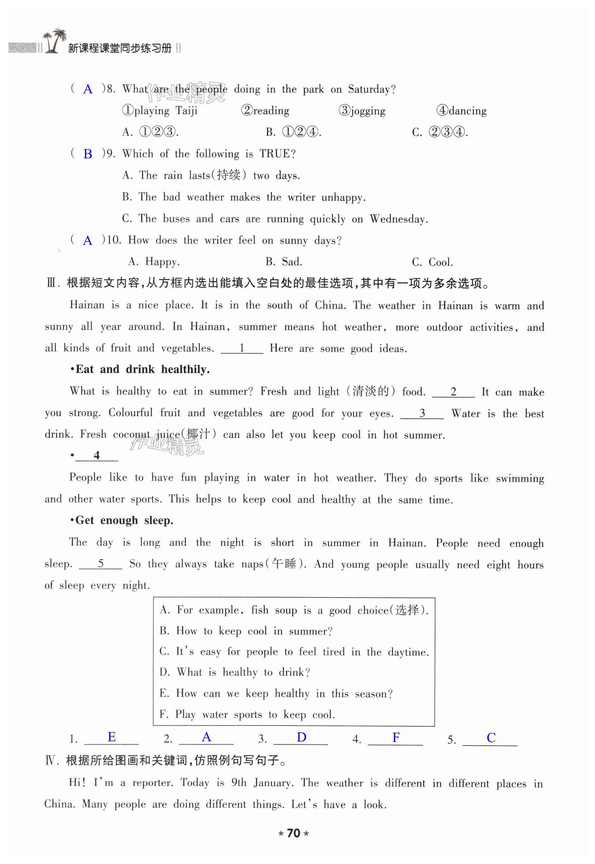 注:目前有些书本章节名称可能整理的还不是很完善,但都是按照顺序排列的,请同学们按照顺序仔细查找。练习册 2025年新课程课堂同步练习册七年级英语下册人教版 答案主要是用来给同学们做完题方便对答案用的,请勿直接抄袭。