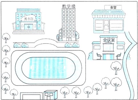 ( )4. The teaching building is between(在……之间)the dining hall and the meeting room.