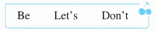 1. Don't 2. Be 3. Let's [点拨]Let's在此处表示提建议。4. Don't [点拨]由后句“It's bad for your eyes.”可知不能在床上读书,故填Don't。