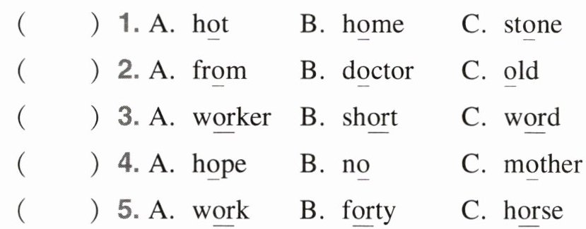 4. C 【点拨】A、B选项中o的发音为/əʊ/,而C选项中o的发音为/ʌ/。