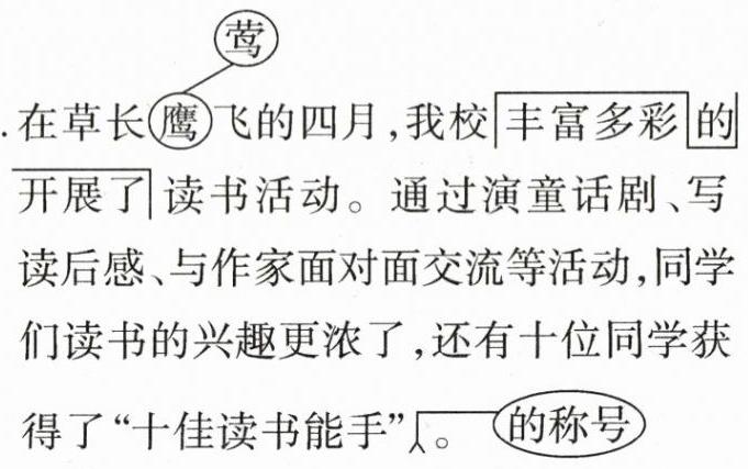 在草长鹰飞的四月,我校丰富多彩的开展了读书活动。通过演童话剧、写读后感、与作家面对面交流等活动,同学们读书的兴趣更浓了,还有十位同学获得了“十佳读书能手”。