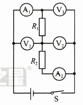 D. 电压表V₃与V₁示数之差等于R₂两端的电压