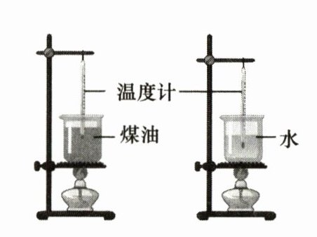 18. Ⓣ星改编(7分)为了比较水和煤油的吸热能力,小宇和小欣利用如图所示的实验装置进行实验。他们用完全相同的酒精灯给质量相等的水和煤油加热,每隔2min,用温度计记录一次水和煤油的温度。记录的实验数据如下表所示。
