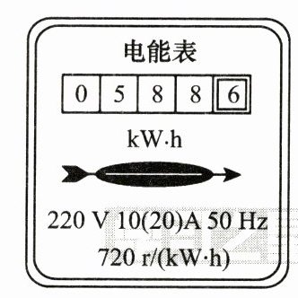 D. “720 r/(kW·h)”是指电路中每消耗1 kW·h的电能,转盘转过720转