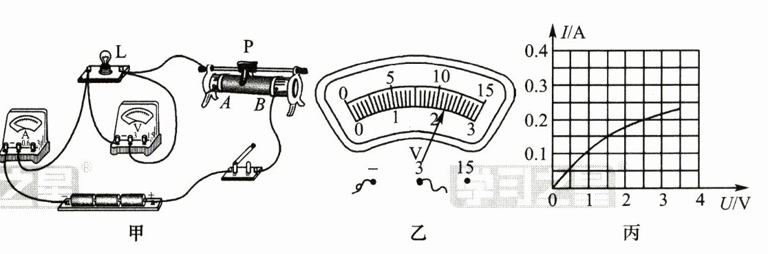 (3) 排除故障后,小明移动滑片P到某一点时,电压表的示数如图乙所示,为________V,若他想测量小灯泡的额定功率,应将图甲中的滑片P向________(选填“A”或“B”)端移动,使电压表的示数为2.5V。