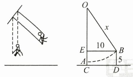 16.新课标渗透传统文化《算法统宗》是中国古代数学名著,作者是明代数学家程大位.书中记载了一道“荡秋千”问题:“平地秋千未起,踏板一尺离地;送行二步与人齐,五尺人高曾记;仕女佳人争蹴,终朝笑语欢嬉;良工高士素好奇,算出索长有几."译文:如图,秋千静止的时候,踏板离地1尺(AC=1尺),将它往前推送两步(BE=10尺)时,此时踏板离地5尺(BD=5尺),秋千的绳索始终拉得很直,试问秋千绳索有多长.”若设秋千绳索长为x尺,则可列方程为( )