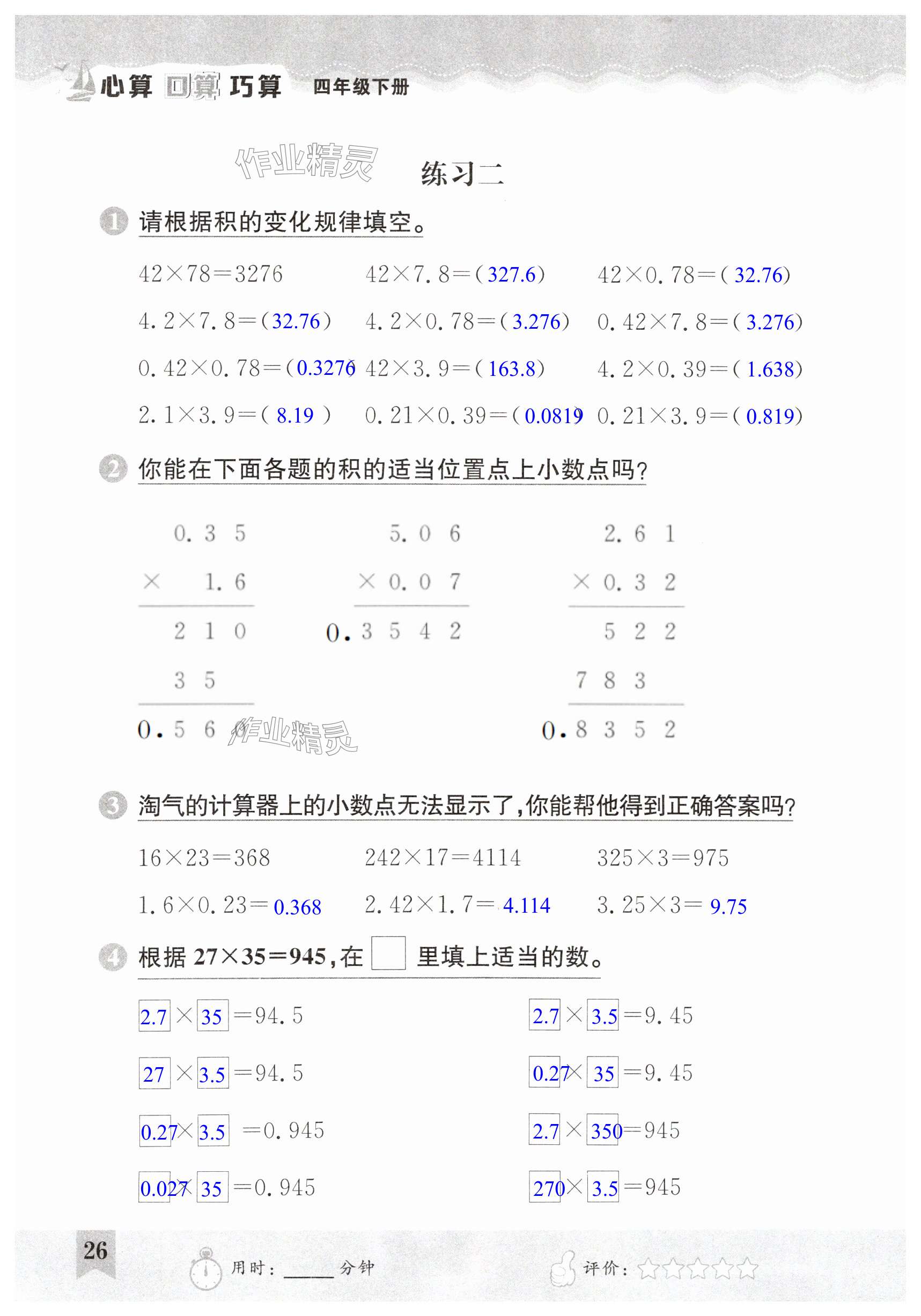 注:目前有些书本章节名称可能整理的还不是很完善,但都是按照顺序排列的,请同学们按照顺序仔细查找。练习册 2025年心算口算巧算四年级下册北师大版 答案主要是用来给同学们做完题方便对答案用的,请勿直接抄袭。
