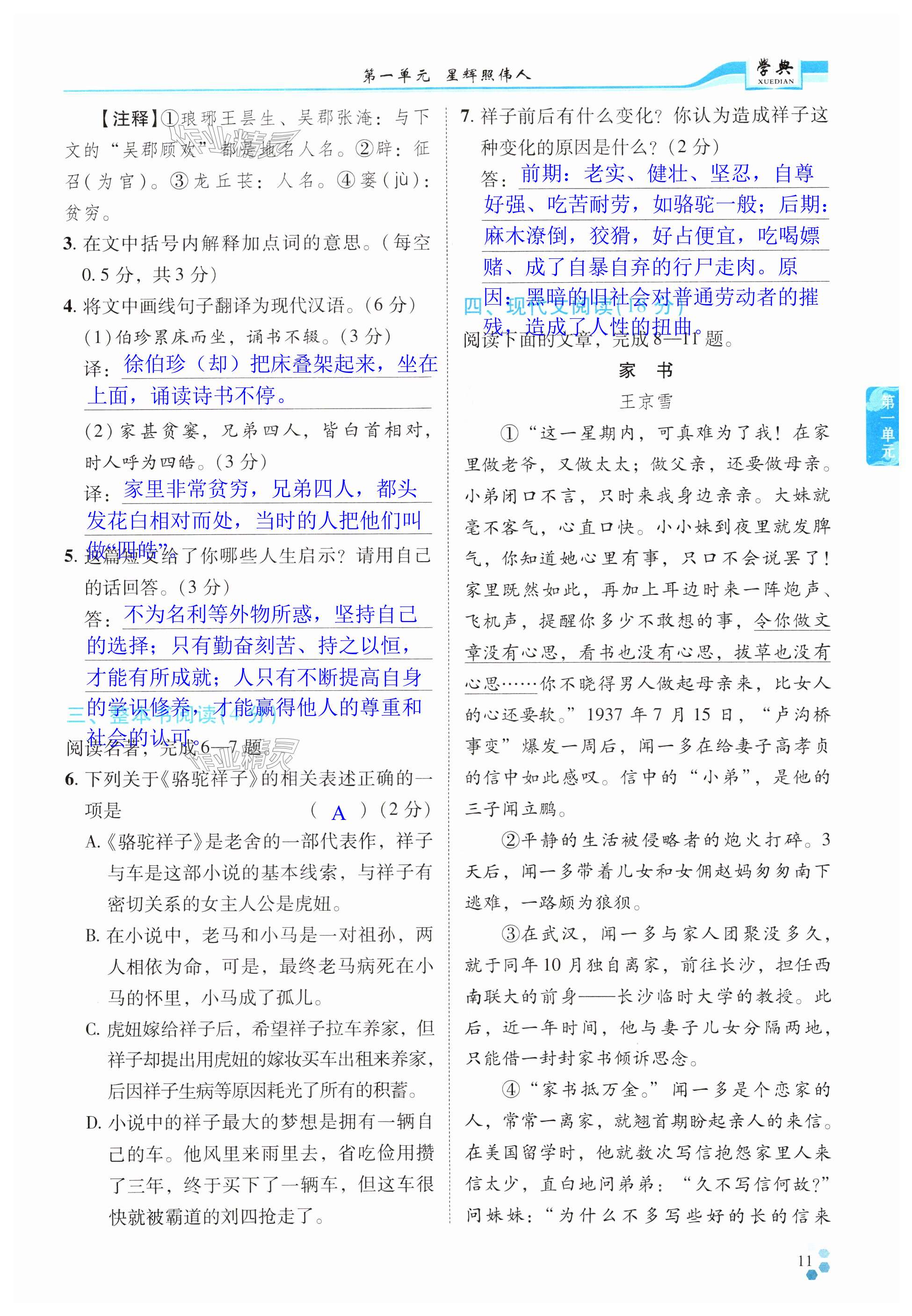 注:目前有些书本章节名称可能整理的还不是很完善,但都是按照顺序排列的,请同学们按照顺序仔细查找。练习册 2025年学典四川七年级语文下册人教版B版 答案主要是用来给同学们做完题方便对答案用的,请勿直接抄袭。
