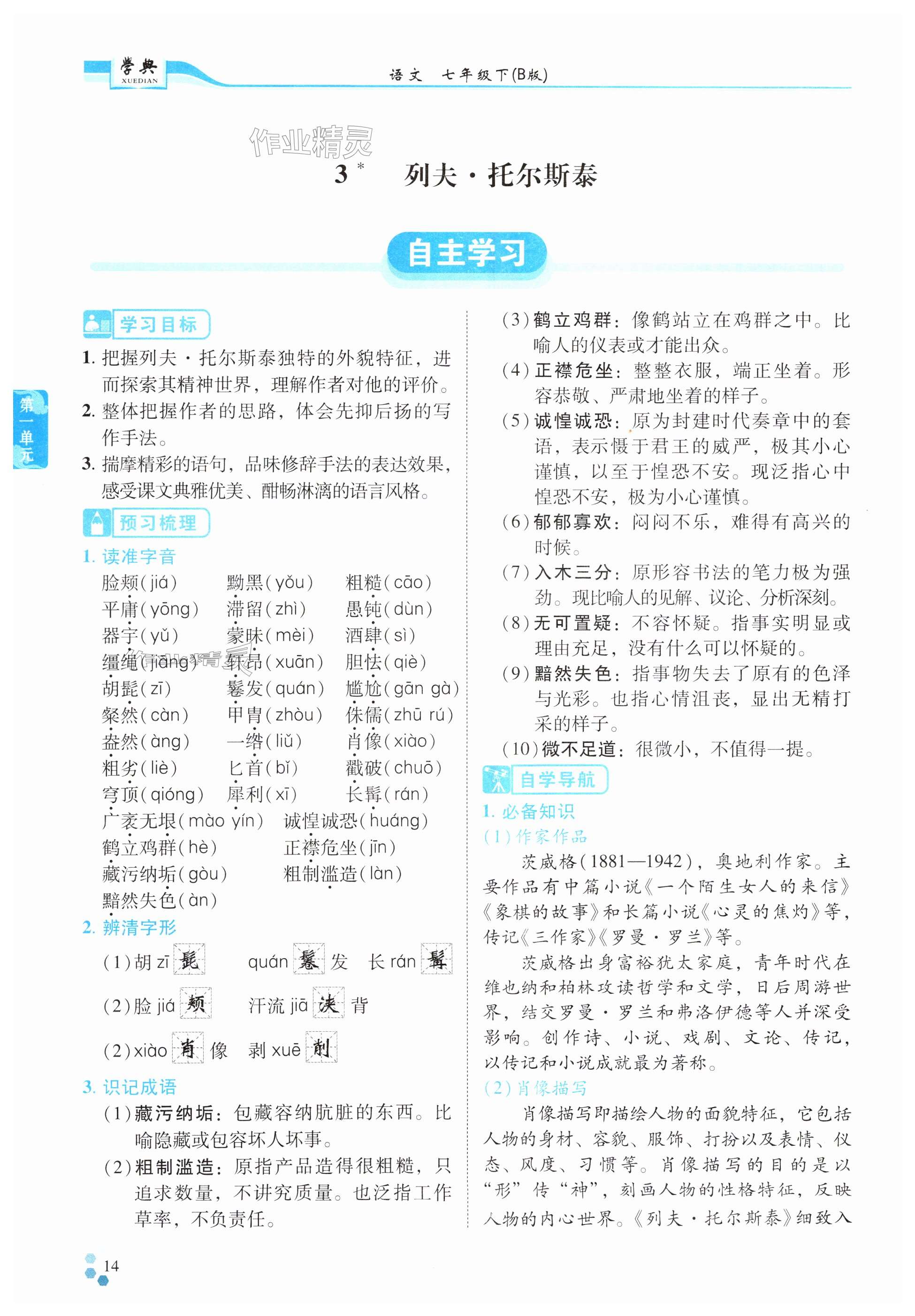 注:目前有些书本章节名称可能整理的还不是很完善,但都是按照顺序排列的,请同学们按照顺序仔细查找。练习册 2025年学典四川七年级语文下册人教版B版 答案主要是用来给同学们做完题方便对答案用的,请勿直接抄袭。