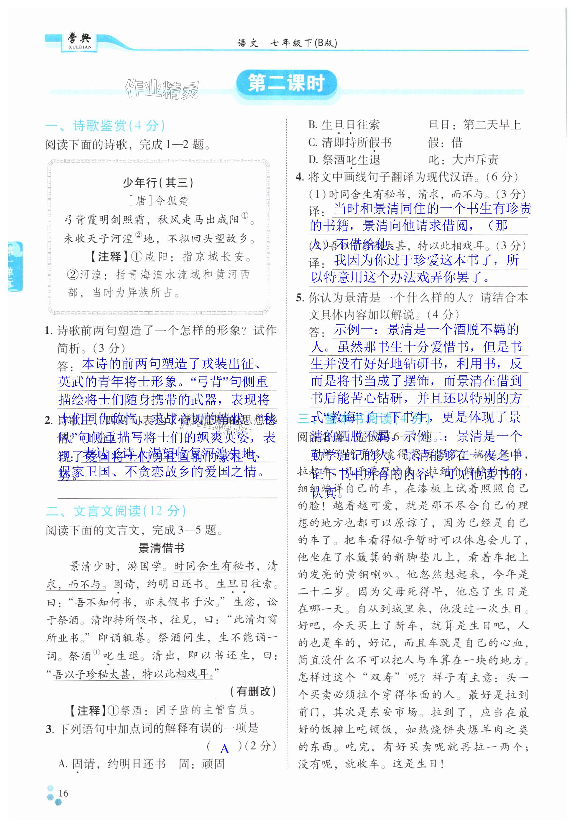 注:目前有些书本章节名称可能整理的还不是很完善,但都是按照顺序排列的,请同学们按照顺序仔细查找。练习册 2025年学典四川七年级语文下册人教版B版 答案主要是用来给同学们做完题方便对答案用的,请勿直接抄袭。
