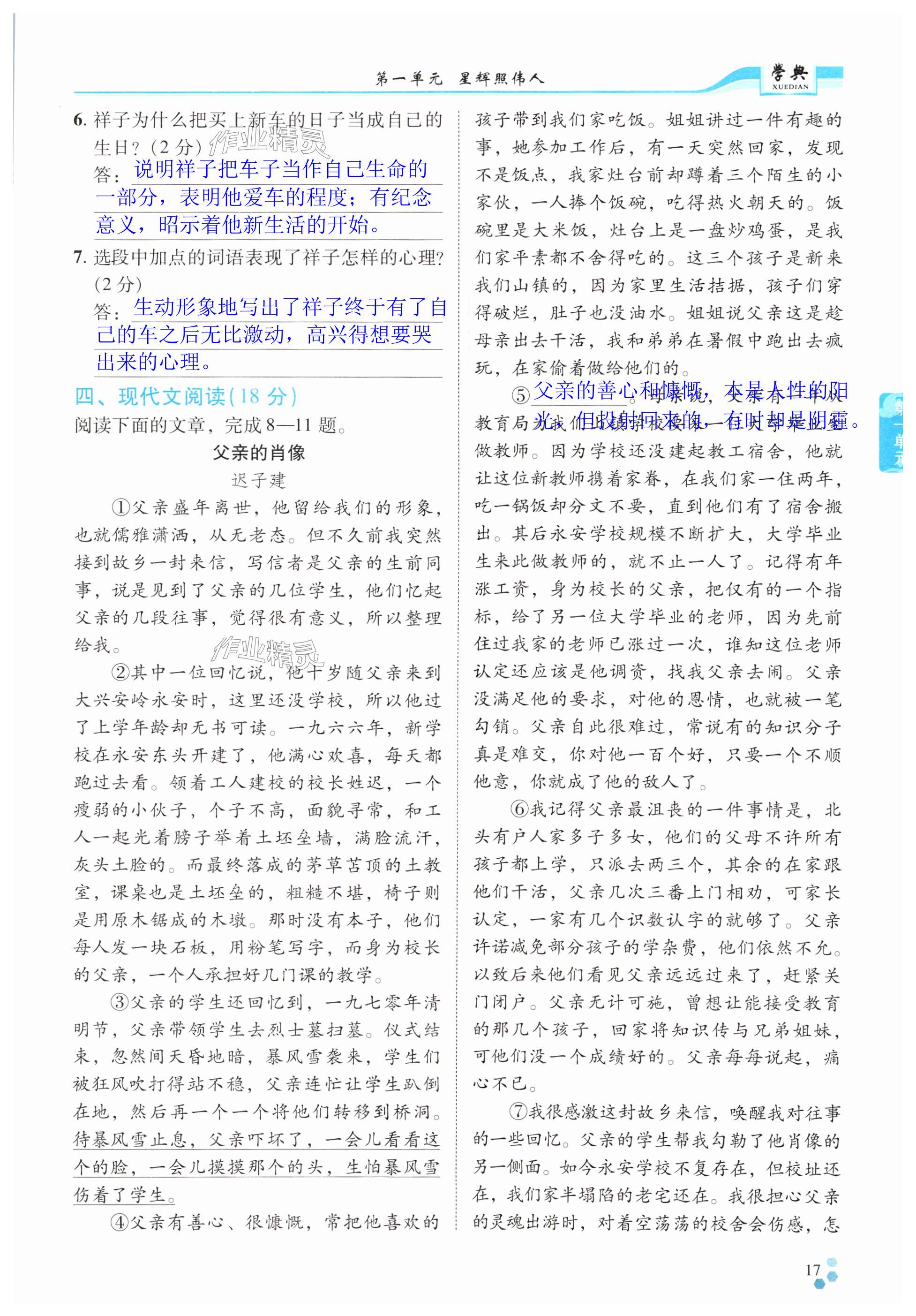 注:目前有些书本章节名称可能整理的还不是很完善,但都是按照顺序排列的,请同学们按照顺序仔细查找。练习册 2025年学典四川七年级语文下册人教版B版 答案主要是用来给同学们做完题方便对答案用的,请勿直接抄袭。
