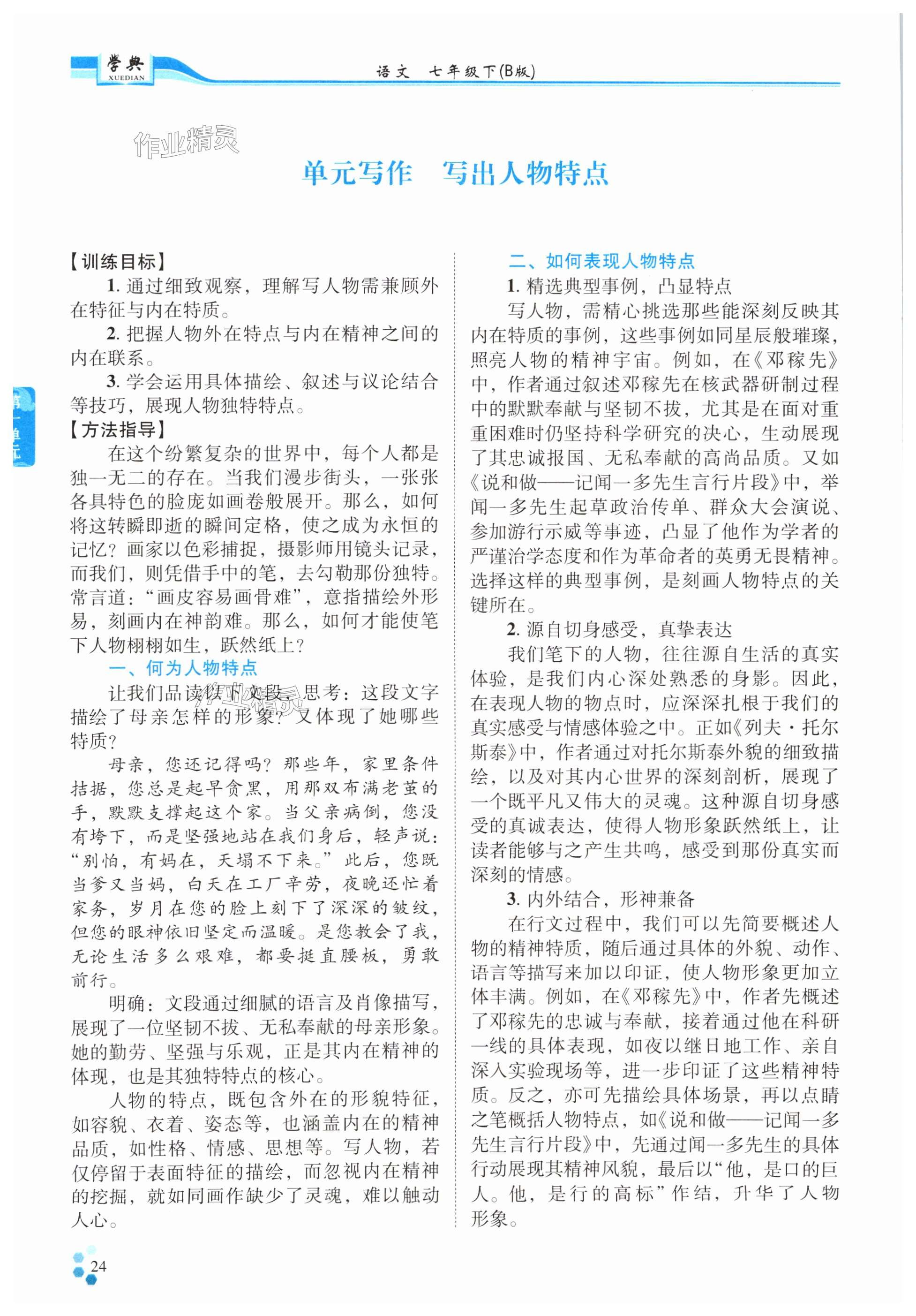 注:目前有些书本章节名称可能整理的还不是很完善,但都是按照顺序排列的,请同学们按照顺序仔细查找。练习册 2025年学典四川七年级语文下册人教版B版 答案主要是用来给同学们做完题方便对答案用的,请勿直接抄袭。