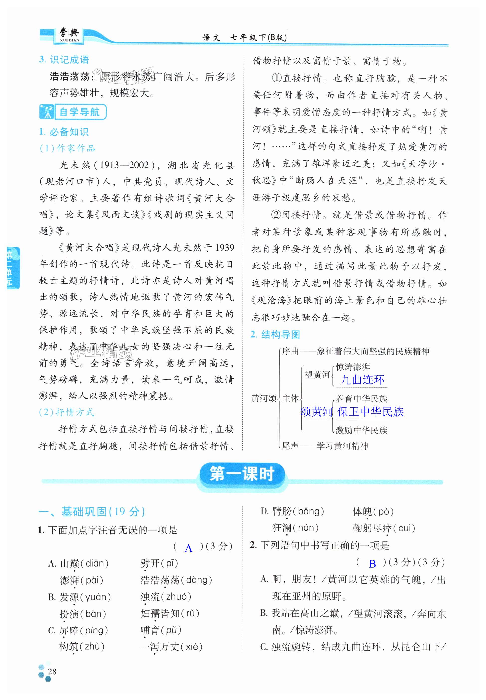 注:目前有些书本章节名称可能整理的还不是很完善,但都是按照顺序排列的,请同学们按照顺序仔细查找。练习册 2025年学典四川七年级语文下册人教版B版 答案主要是用来给同学们做完题方便对答案用的,请勿直接抄袭。