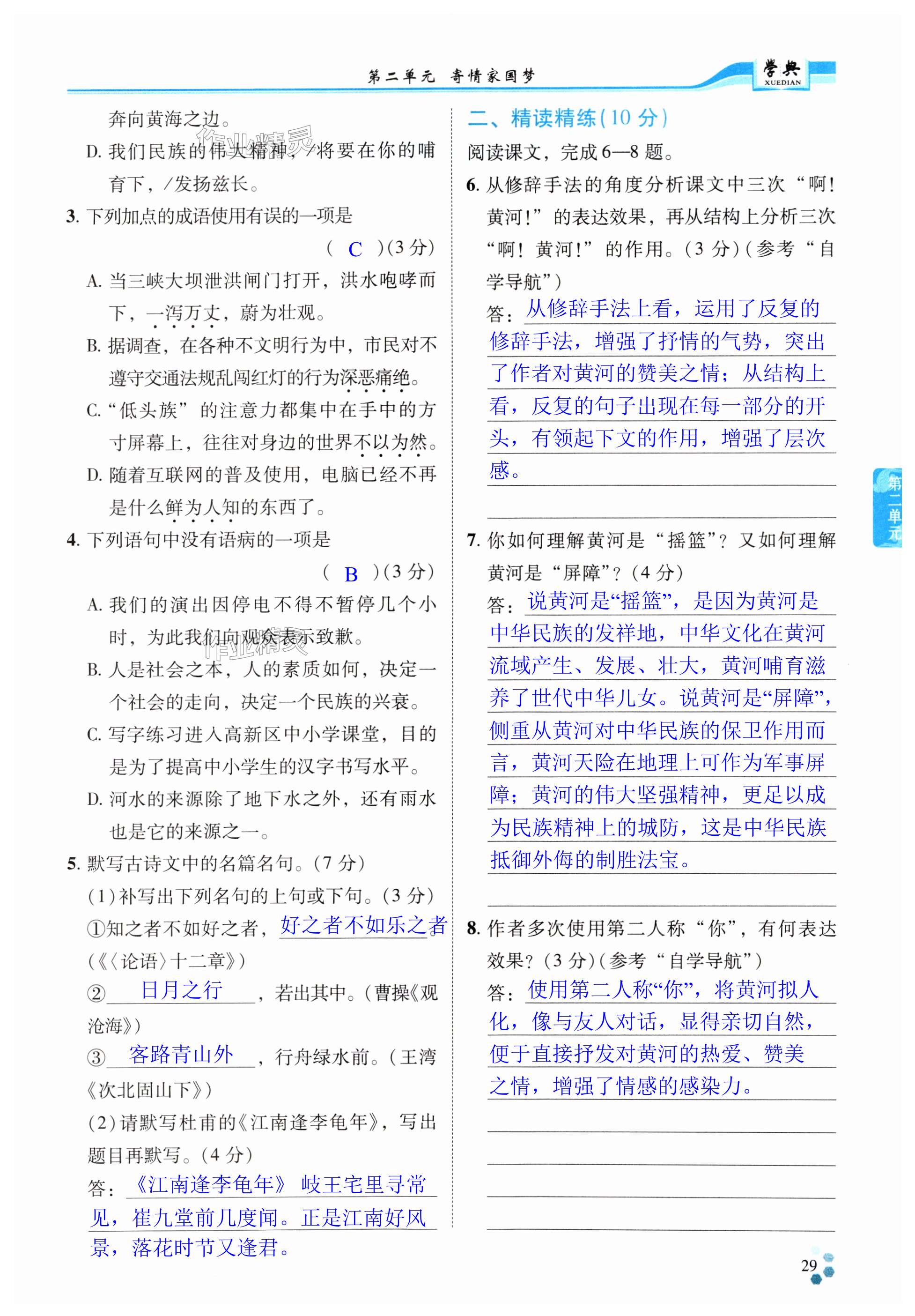 注:目前有些书本章节名称可能整理的还不是很完善,但都是按照顺序排列的,请同学们按照顺序仔细查找。练习册 2025年学典四川七年级语文下册人教版B版 答案主要是用来给同学们做完题方便对答案用的,请勿直接抄袭。