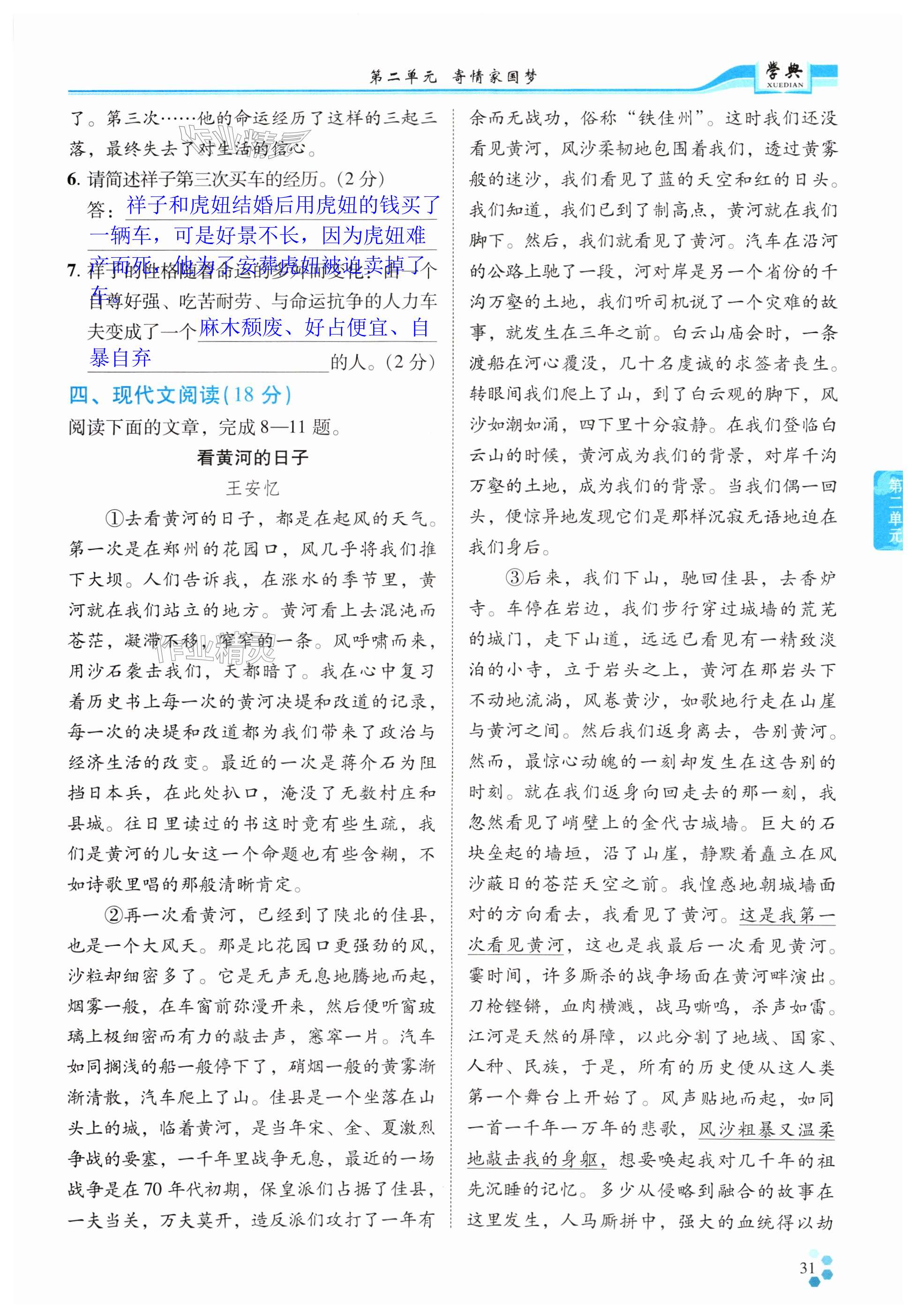注:目前有些书本章节名称可能整理的还不是很完善,但都是按照顺序排列的,请同学们按照顺序仔细查找。练习册 2025年学典四川七年级语文下册人教版B版 答案主要是用来给同学们做完题方便对答案用的,请勿直接抄袭。