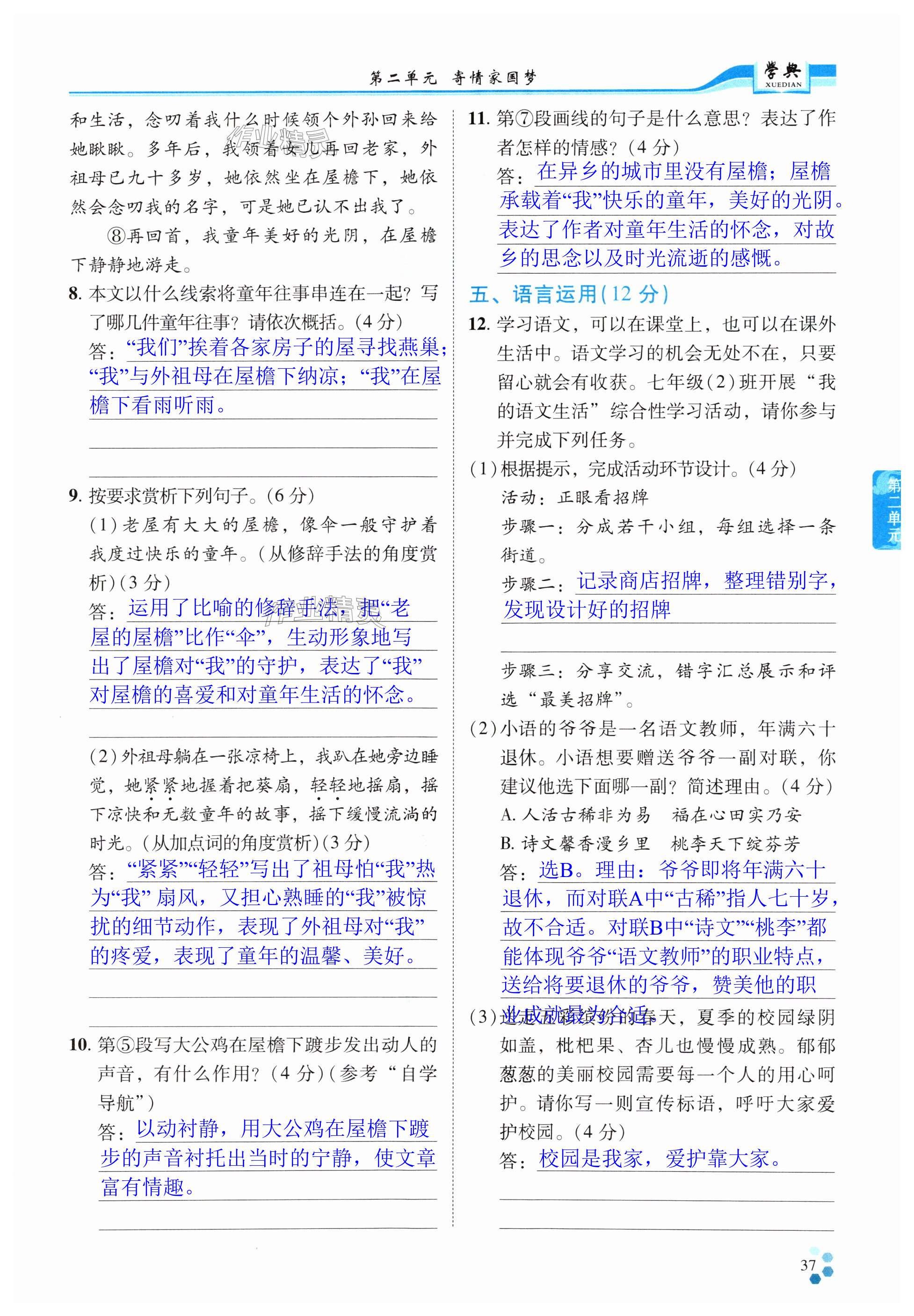 注:目前有些书本章节名称可能整理的还不是很完善,但都是按照顺序排列的,请同学们按照顺序仔细查找。练习册 2025年学典四川七年级语文下册人教版B版 答案主要是用来给同学们做完题方便对答案用的,请勿直接抄袭。