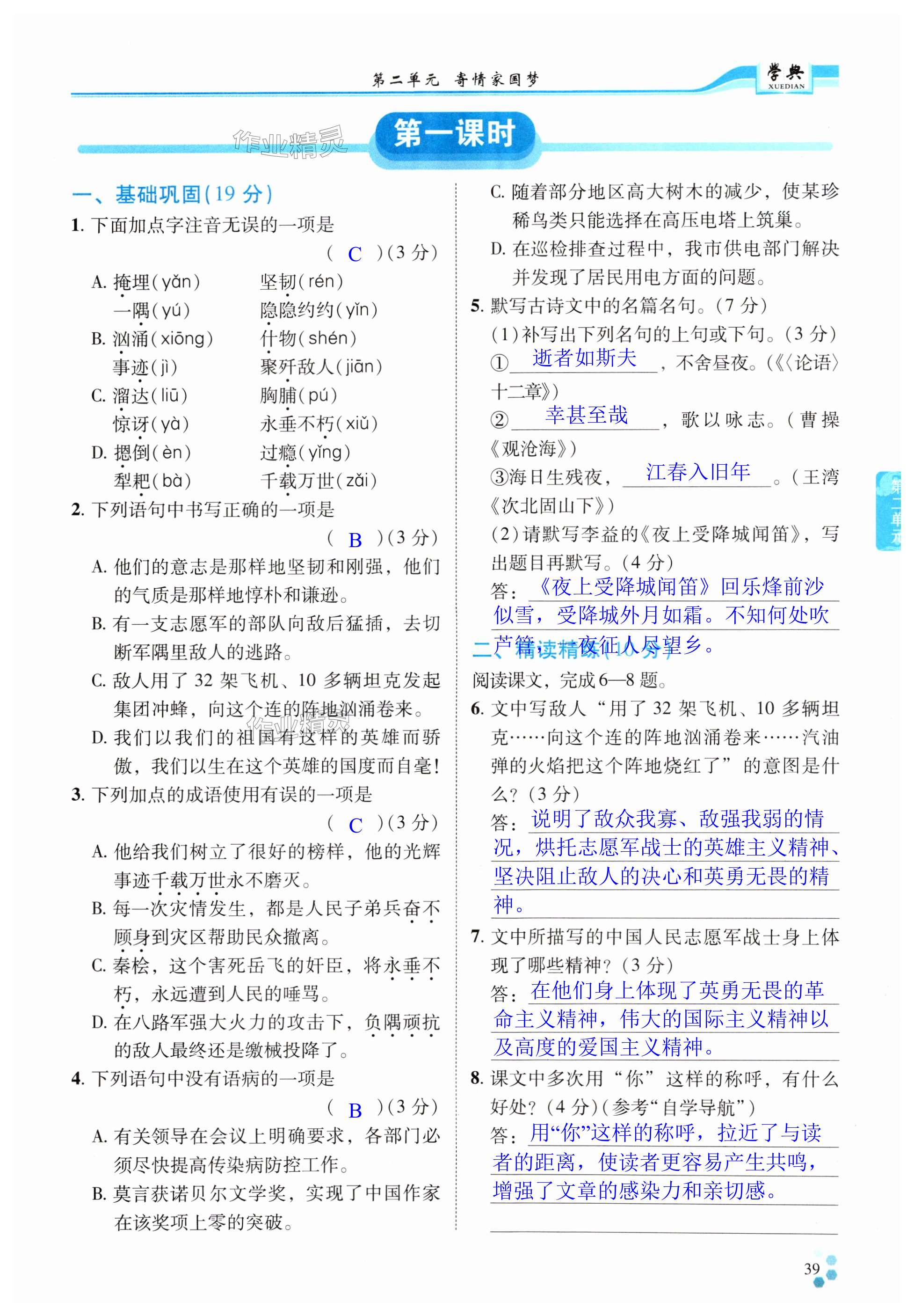 注:目前有些书本章节名称可能整理的还不是很完善,但都是按照顺序排列的,请同学们按照顺序仔细查找。练习册 2025年学典四川七年级语文下册人教版B版 答案主要是用来给同学们做完题方便对答案用的,请勿直接抄袭。