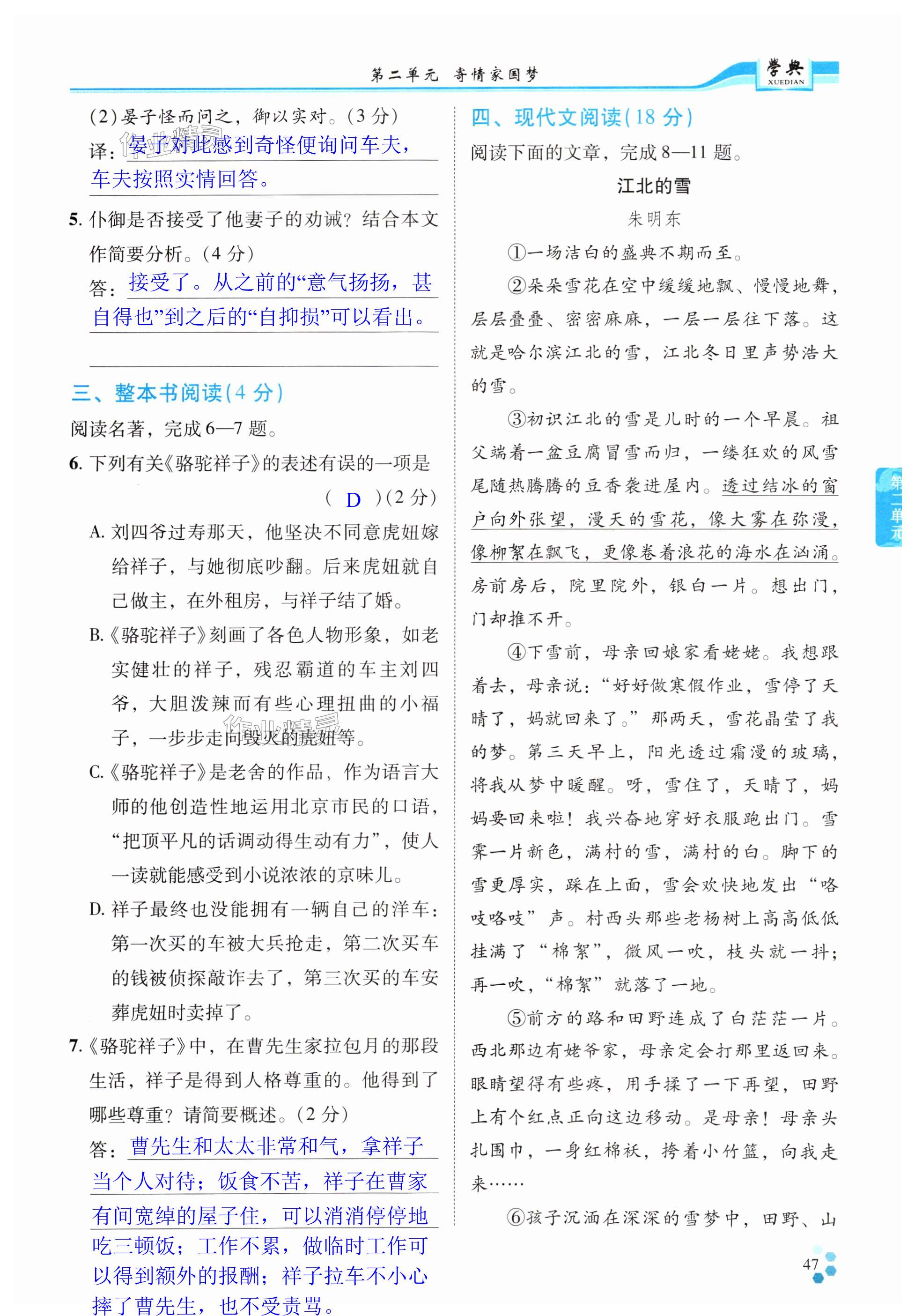 注:目前有些书本章节名称可能整理的还不是很完善,但都是按照顺序排列的,请同学们按照顺序仔细查找。练习册 2025年学典四川七年级语文下册人教版B版 答案主要是用来给同学们做完题方便对答案用的,请勿直接抄袭。