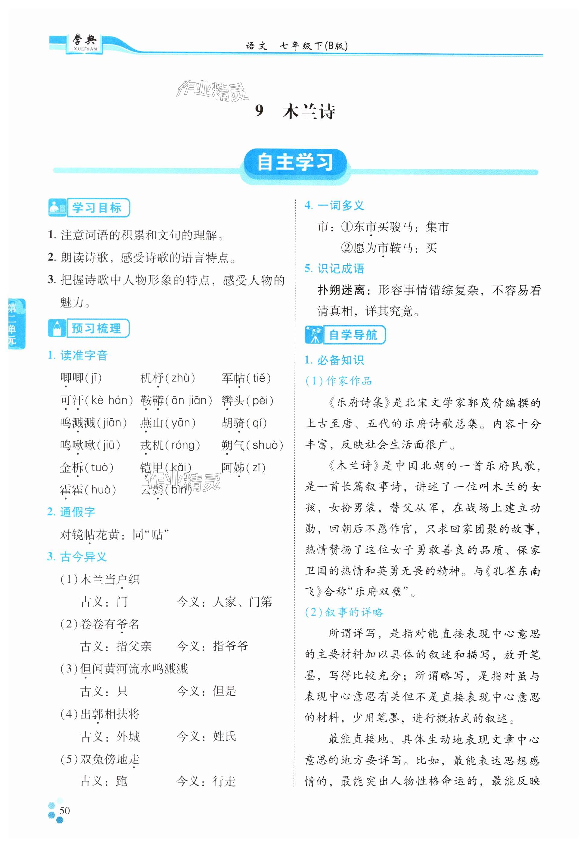 注:目前有些书本章节名称可能整理的还不是很完善,但都是按照顺序排列的,请同学们按照顺序仔细查找。练习册 2025年学典四川七年级语文下册人教版B版 答案主要是用来给同学们做完题方便对答案用的,请勿直接抄袭。