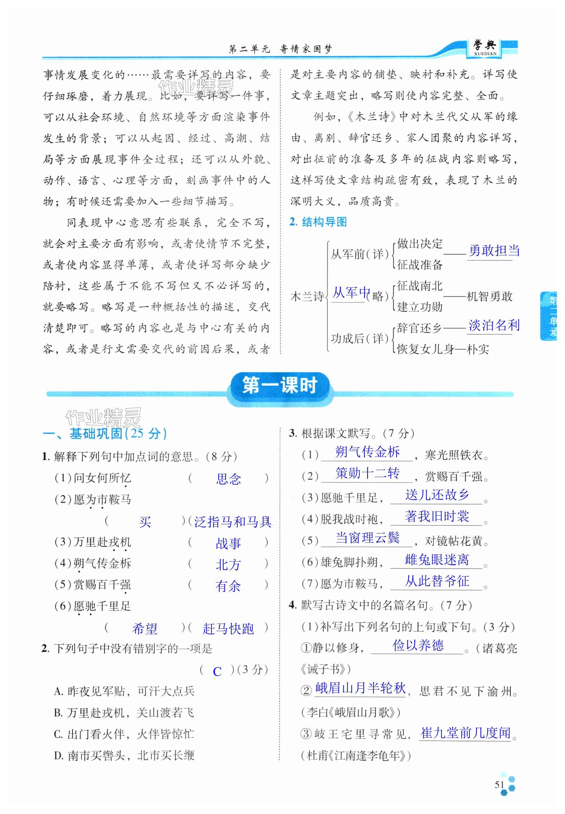 注:目前有些书本章节名称可能整理的还不是很完善,但都是按照顺序排列的,请同学们按照顺序仔细查找。练习册 2025年学典四川七年级语文下册人教版B版 答案主要是用来给同学们做完题方便对答案用的,请勿直接抄袭。