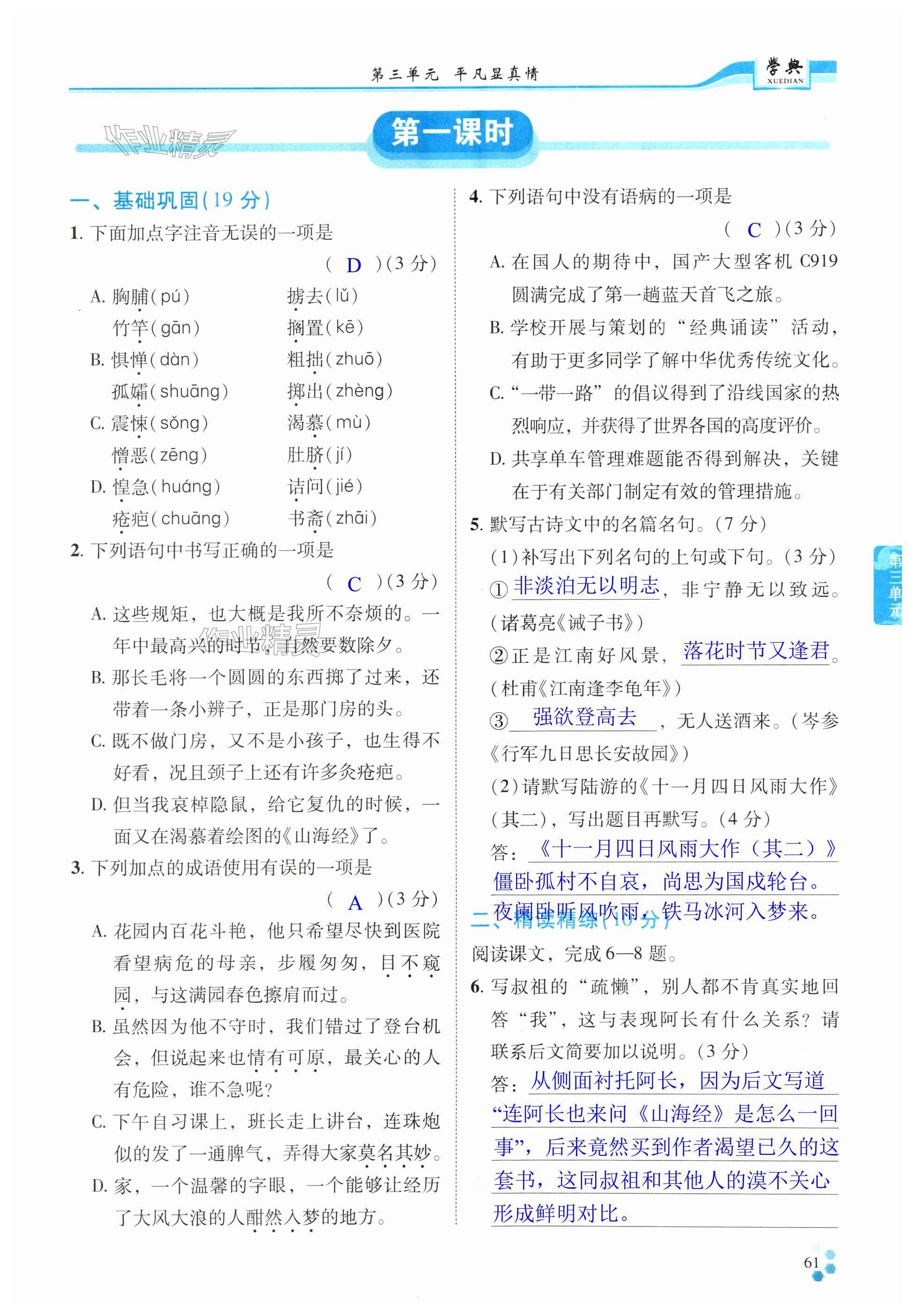 注:目前有些书本章节名称可能整理的还不是很完善,但都是按照顺序排列的,请同学们按照顺序仔细查找。练习册 2025年学典四川七年级语文下册人教版B版 答案主要是用来给同学们做完题方便对答案用的,请勿直接抄袭。