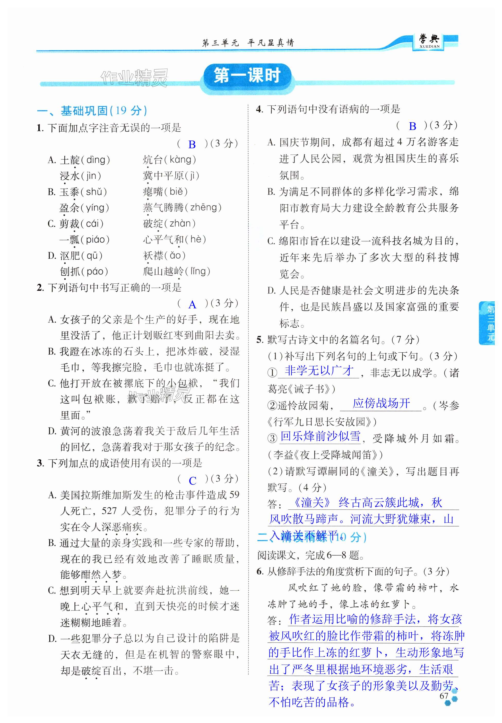 注:目前有些书本章节名称可能整理的还不是很完善,但都是按照顺序排列的,请同学们按照顺序仔细查找。练习册 2025年学典四川七年级语文下册人教版B版 答案主要是用来给同学们做完题方便对答案用的,请勿直接抄袭。
