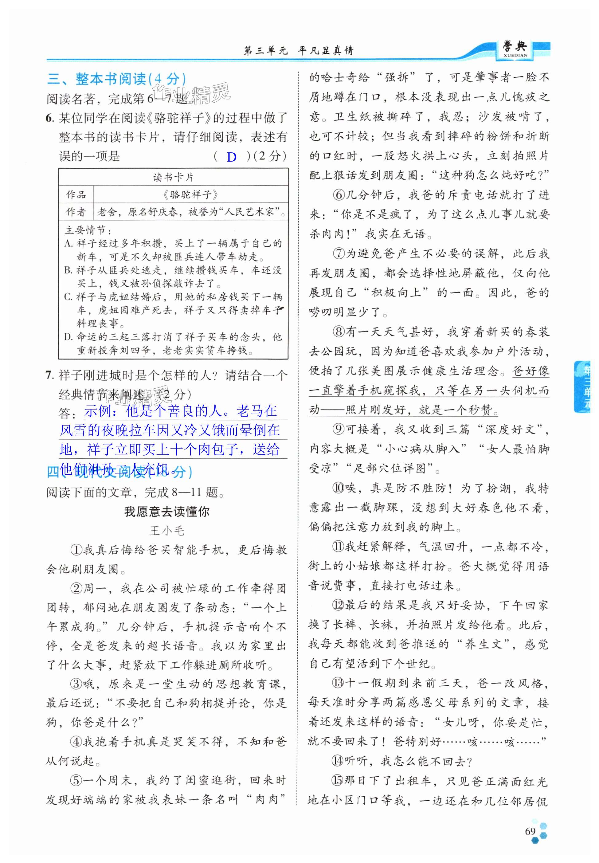 注:目前有些书本章节名称可能整理的还不是很完善,但都是按照顺序排列的,请同学们按照顺序仔细查找。练习册 2025年学典四川七年级语文下册人教版B版 答案主要是用来给同学们做完题方便对答案用的,请勿直接抄袭。