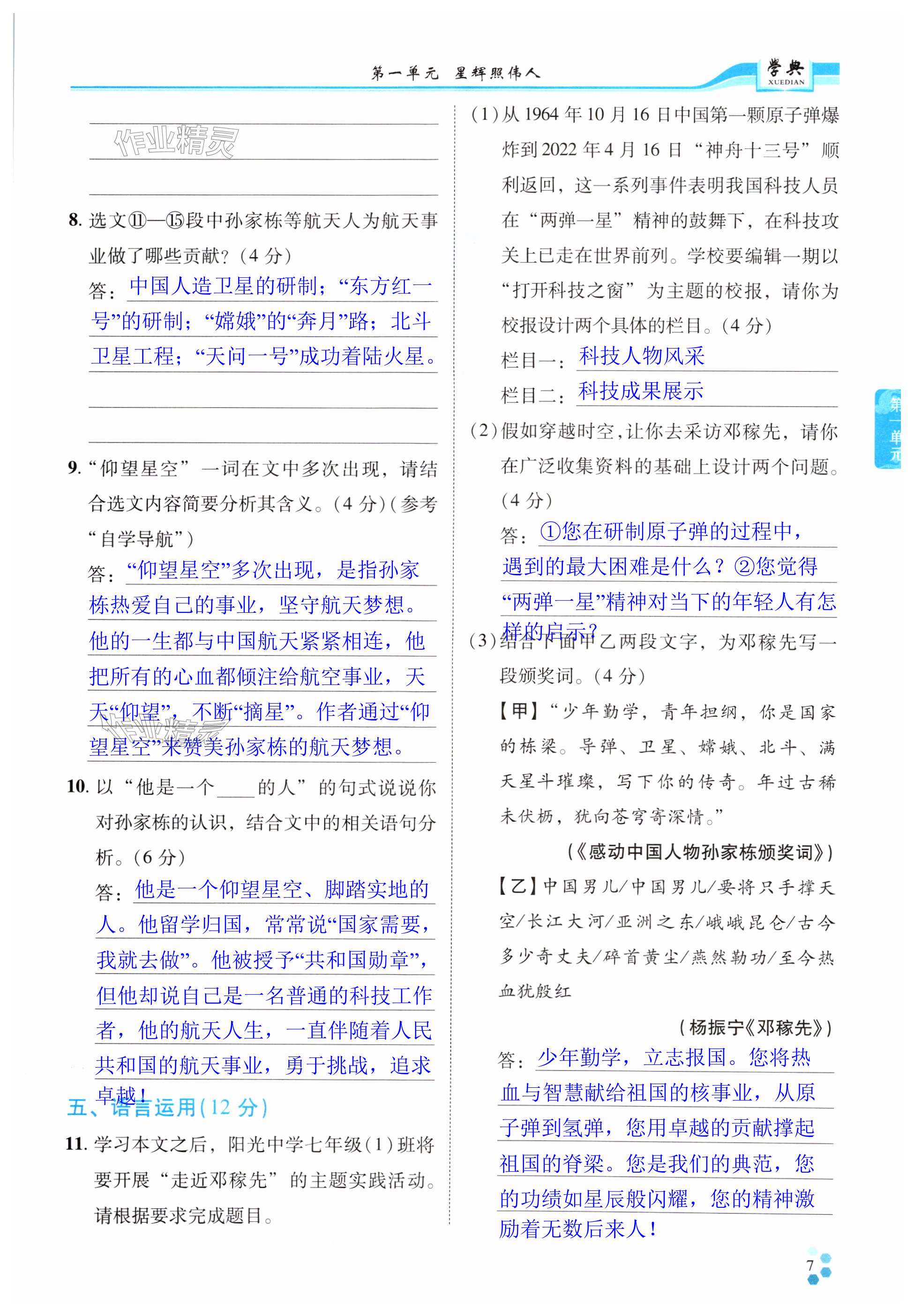 注:目前有些书本章节名称可能整理的还不是很完善,但都是按照顺序排列的,请同学们按照顺序仔细查找。练习册 2025年学典四川七年级语文下册人教版B版 答案主要是用来给同学们做完题方便对答案用的,请勿直接抄袭。