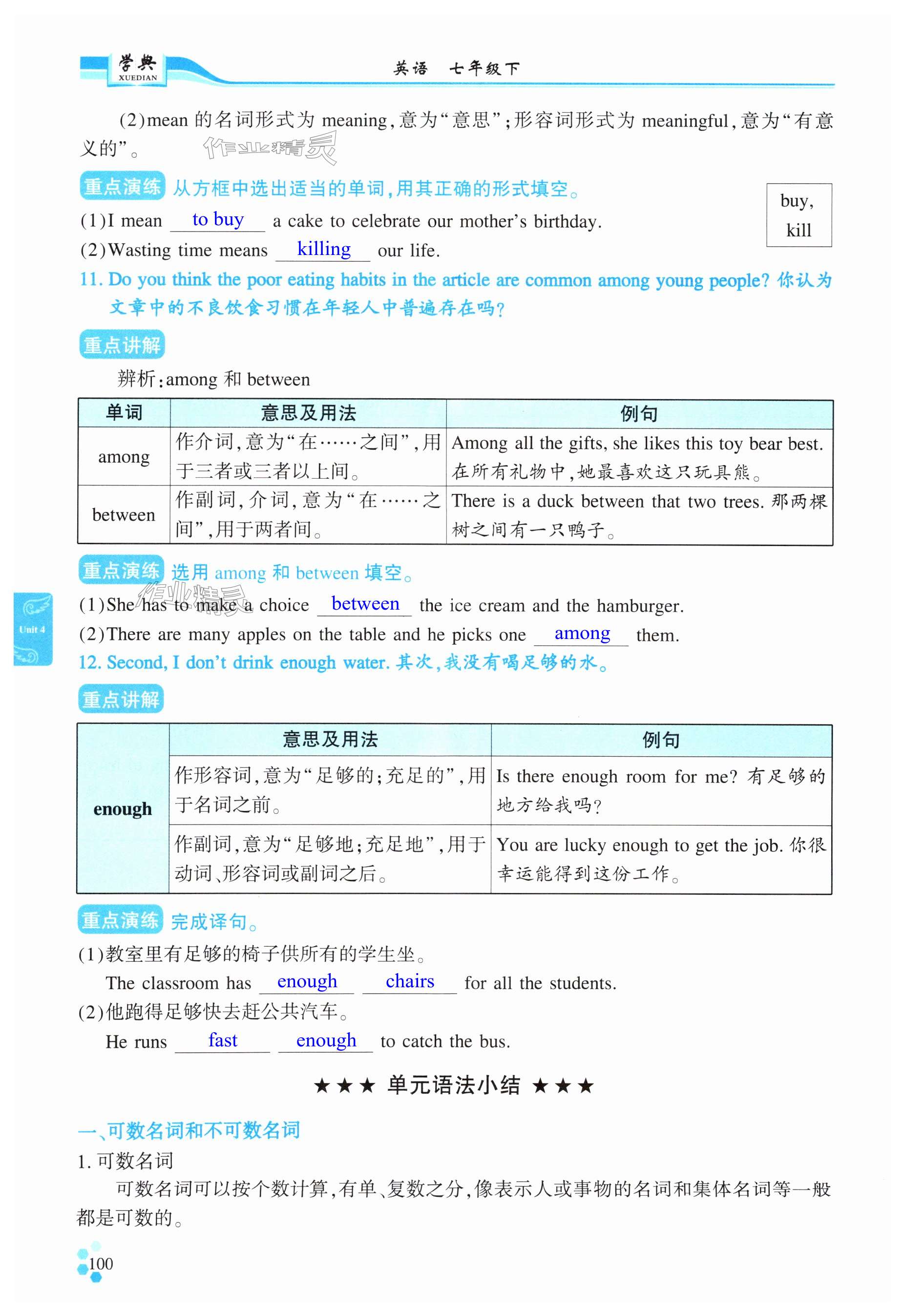 注:目前有些书本章节名称可能整理的还不是很完善,但都是按照顺序排列的,请同学们按照顺序仔细查找。练习册 2025年学典四川七年级英语下册人教版B版 答案主要是用来给同学们做完题方便对答案用的,请勿直接抄袭。