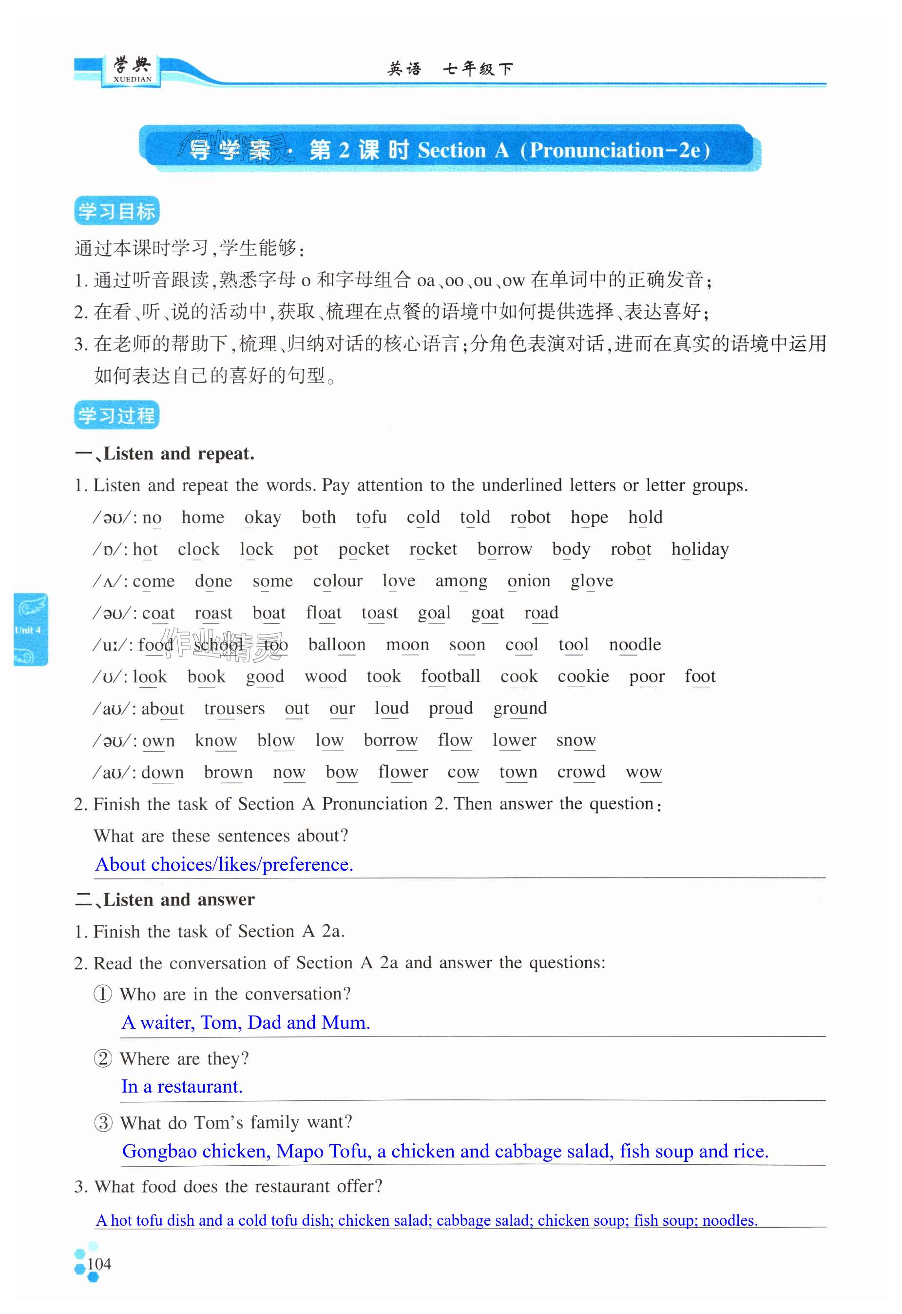注:目前有些书本章节名称可能整理的还不是很完善,但都是按照顺序排列的,请同学们按照顺序仔细查找。练习册 2025年学典四川七年级英语下册人教版B版 答案主要是用来给同学们做完题方便对答案用的,请勿直接抄袭。
