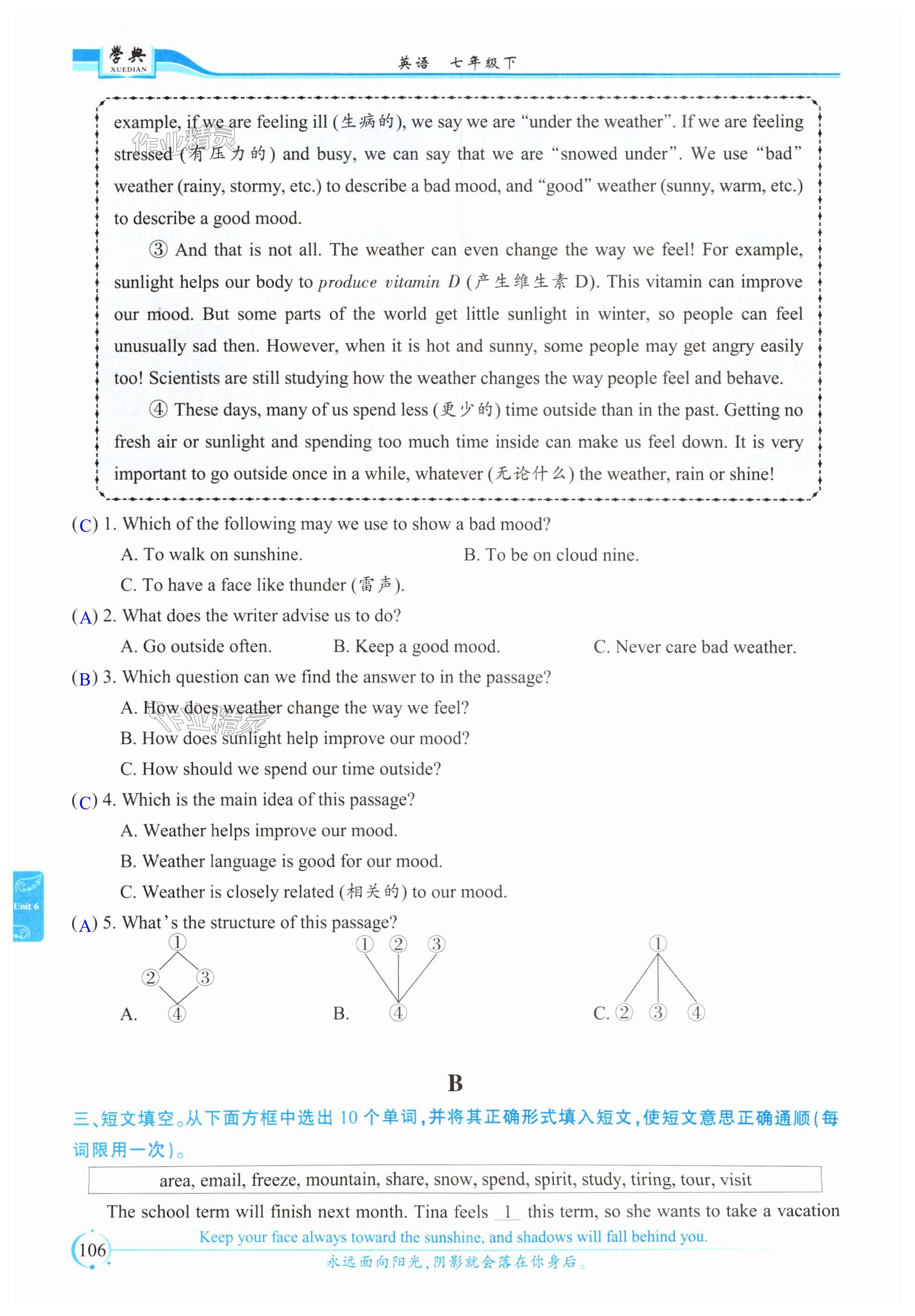 注:目前有些书本章节名称可能整理的还不是很完善,但都是按照顺序排列的,请同学们按照顺序仔细查找。练习册 2025年学典四川七年级英语下册人教版B版 答案主要是用来给同学们做完题方便对答案用的,请勿直接抄袭。