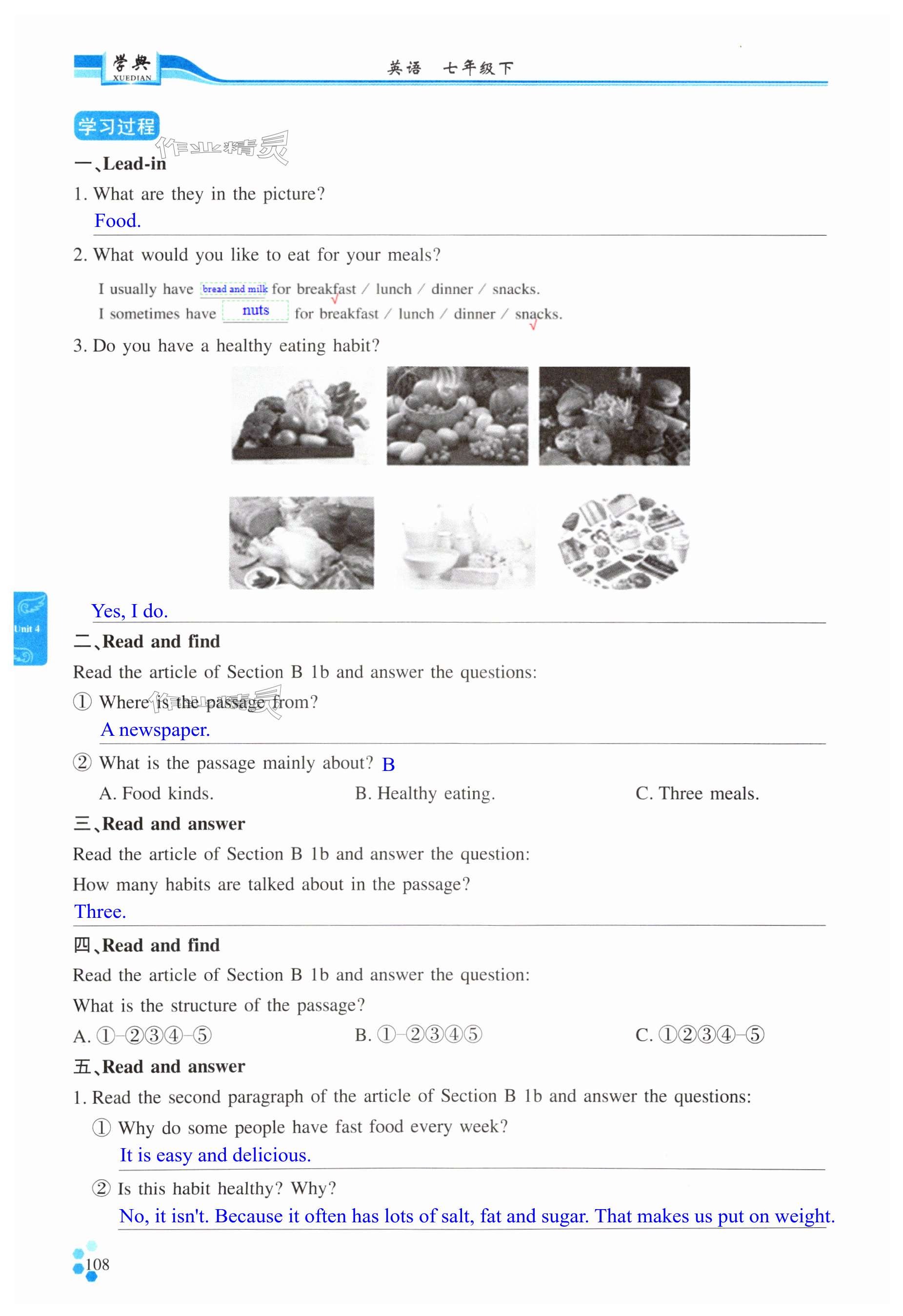 注:目前有些书本章节名称可能整理的还不是很完善,但都是按照顺序排列的,请同学们按照顺序仔细查找。练习册 2025年学典四川七年级英语下册人教版B版 答案主要是用来给同学们做完题方便对答案用的,请勿直接抄袭。
