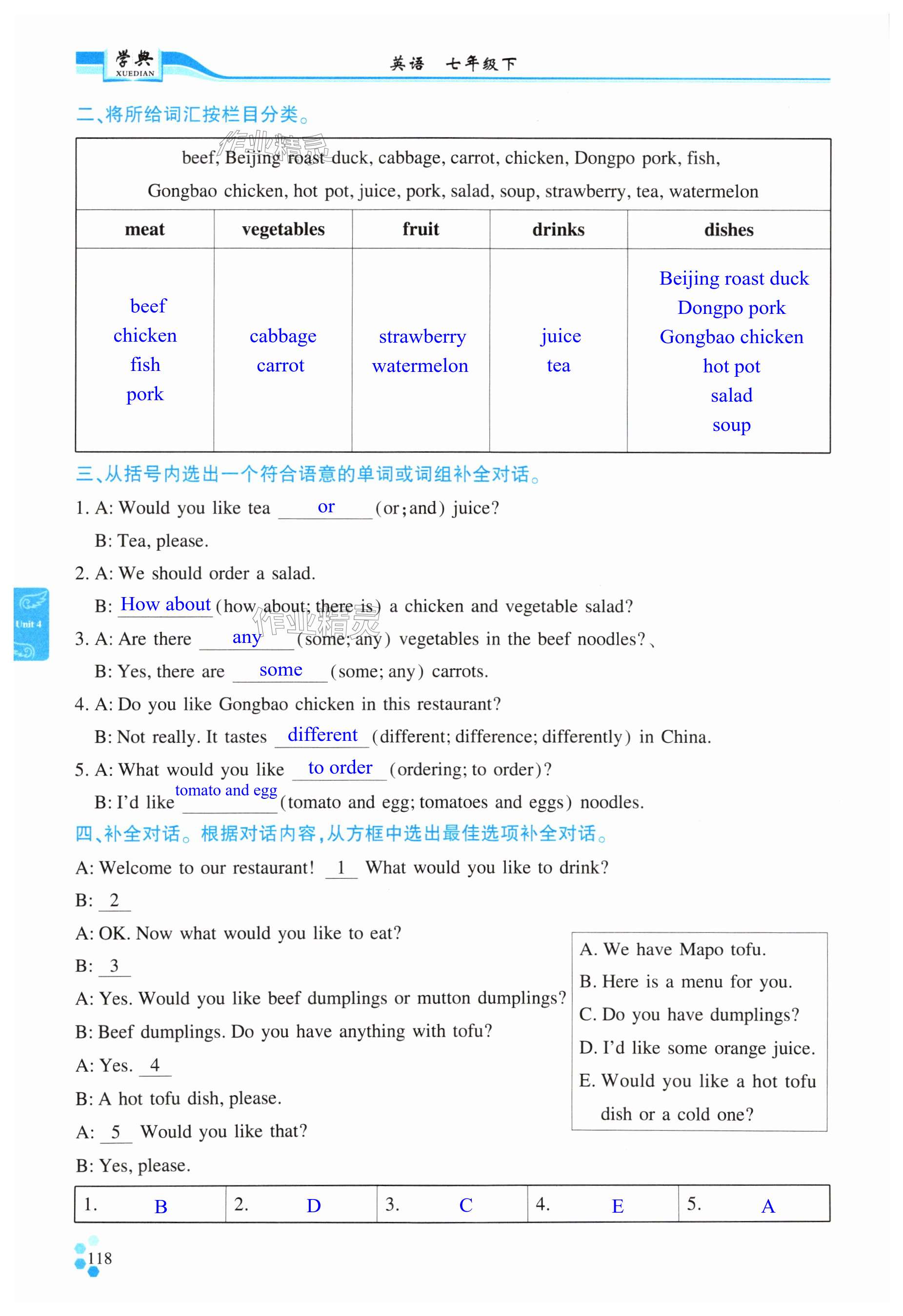 注:目前有些书本章节名称可能整理的还不是很完善,但都是按照顺序排列的,请同学们按照顺序仔细查找。练习册 2025年学典四川七年级英语下册人教版B版 答案主要是用来给同学们做完题方便对答案用的,请勿直接抄袭。