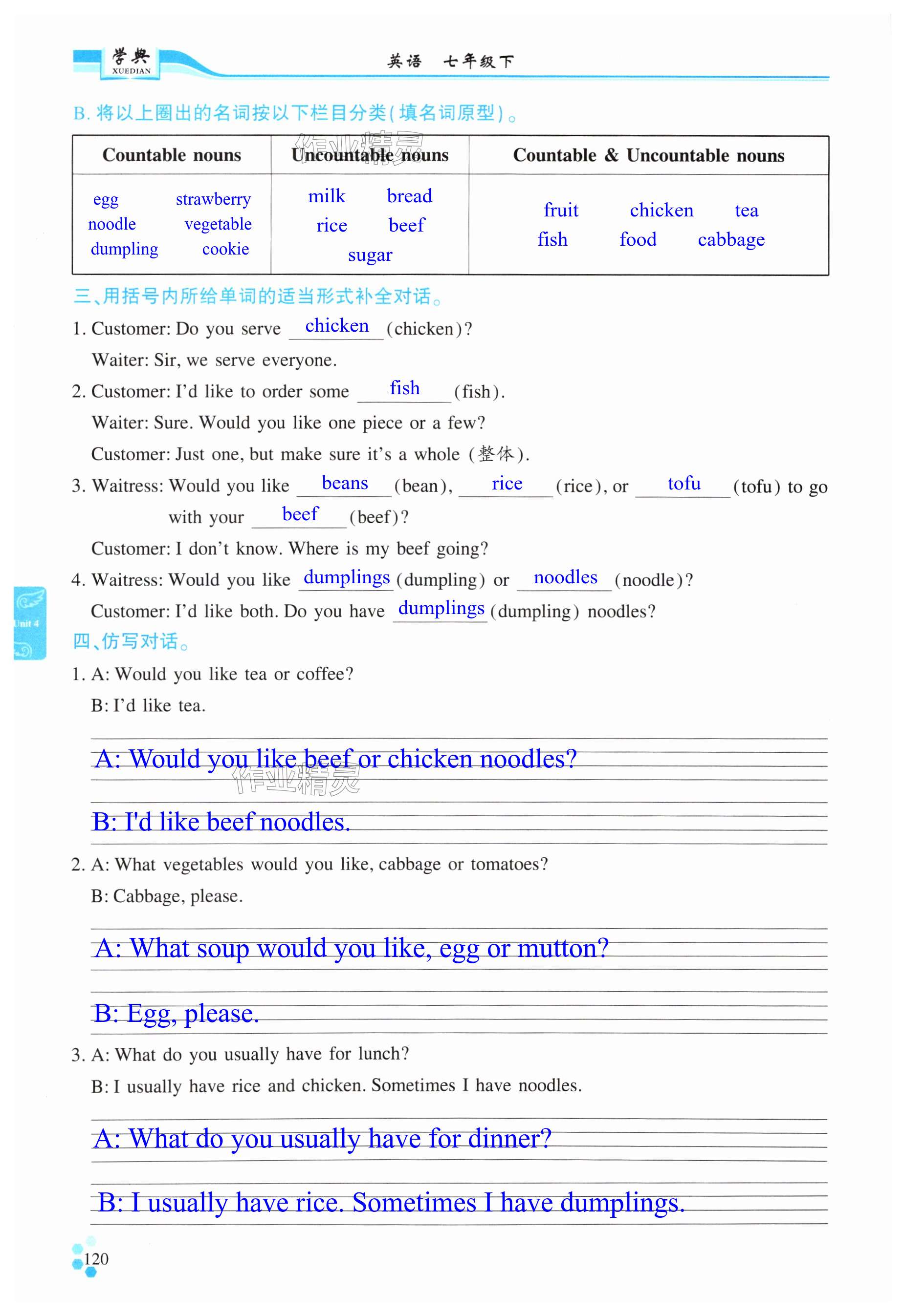 注:目前有些书本章节名称可能整理的还不是很完善,但都是按照顺序排列的,请同学们按照顺序仔细查找。练习册 2025年学典四川七年级英语下册人教版B版 答案主要是用来给同学们做完题方便对答案用的,请勿直接抄袭。