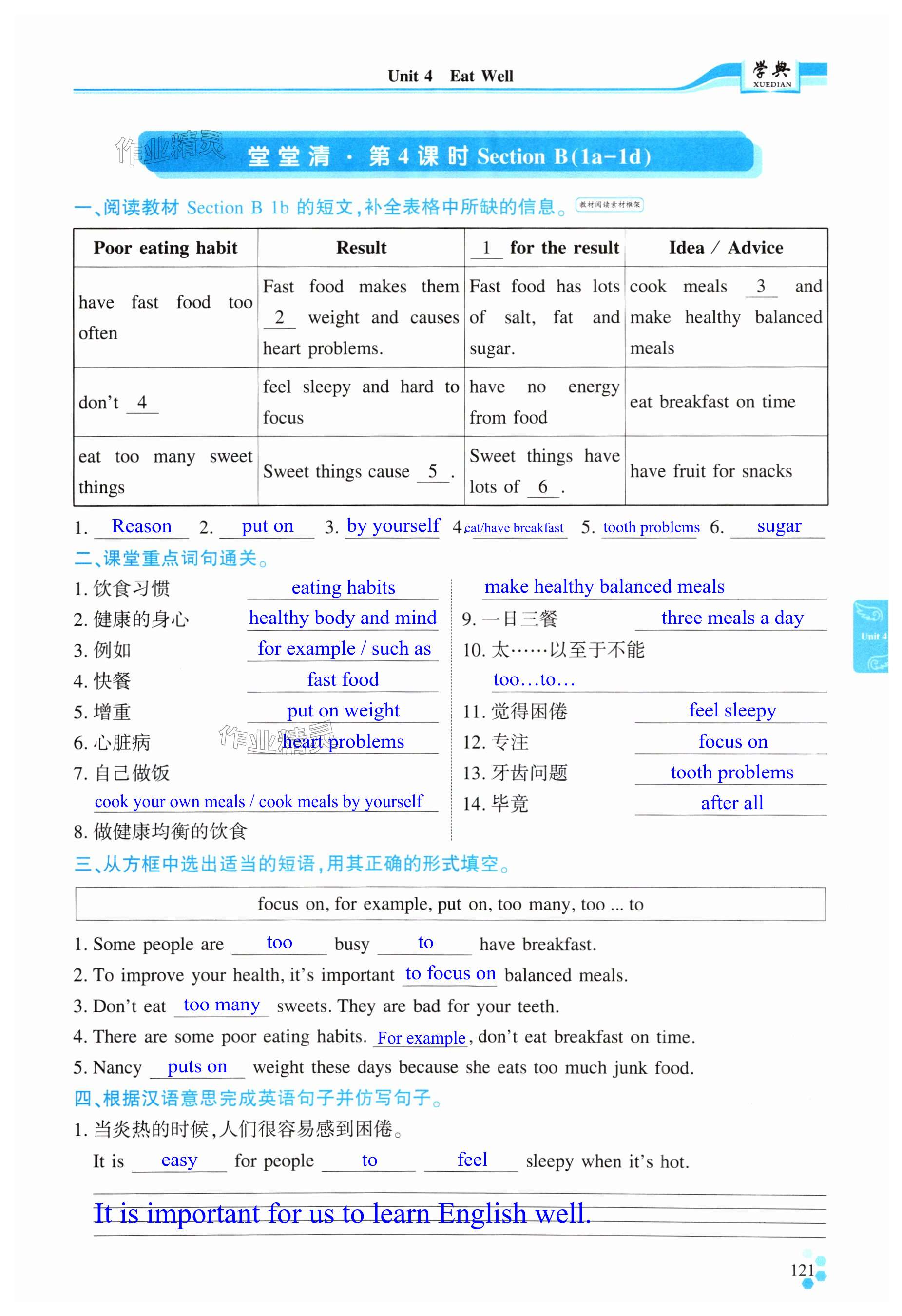 注:目前有些书本章节名称可能整理的还不是很完善,但都是按照顺序排列的,请同学们按照顺序仔细查找。练习册 2025年学典四川七年级英语下册人教版B版 答案主要是用来给同学们做完题方便对答案用的,请勿直接抄袭。