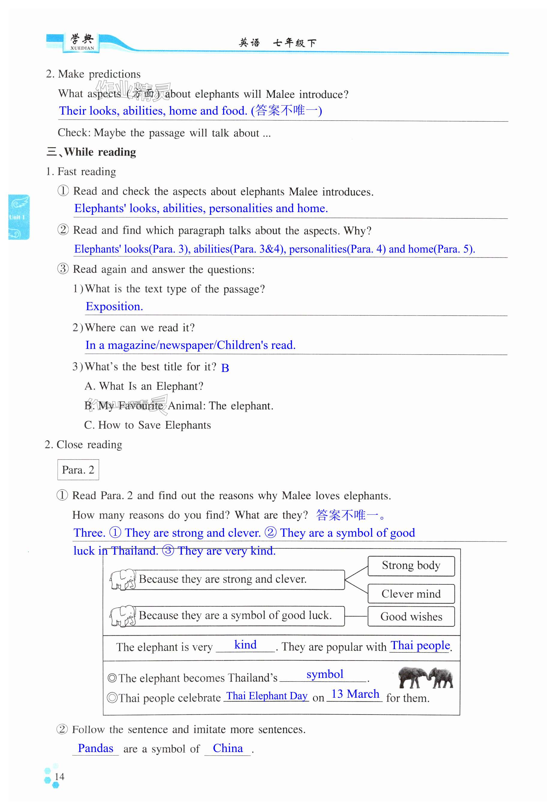 注:目前有些书本章节名称可能整理的还不是很完善,但都是按照顺序排列的,请同学们按照顺序仔细查找。练习册 2025年学典四川七年级英语下册人教版B版 答案主要是用来给同学们做完题方便对答案用的,请勿直接抄袭。