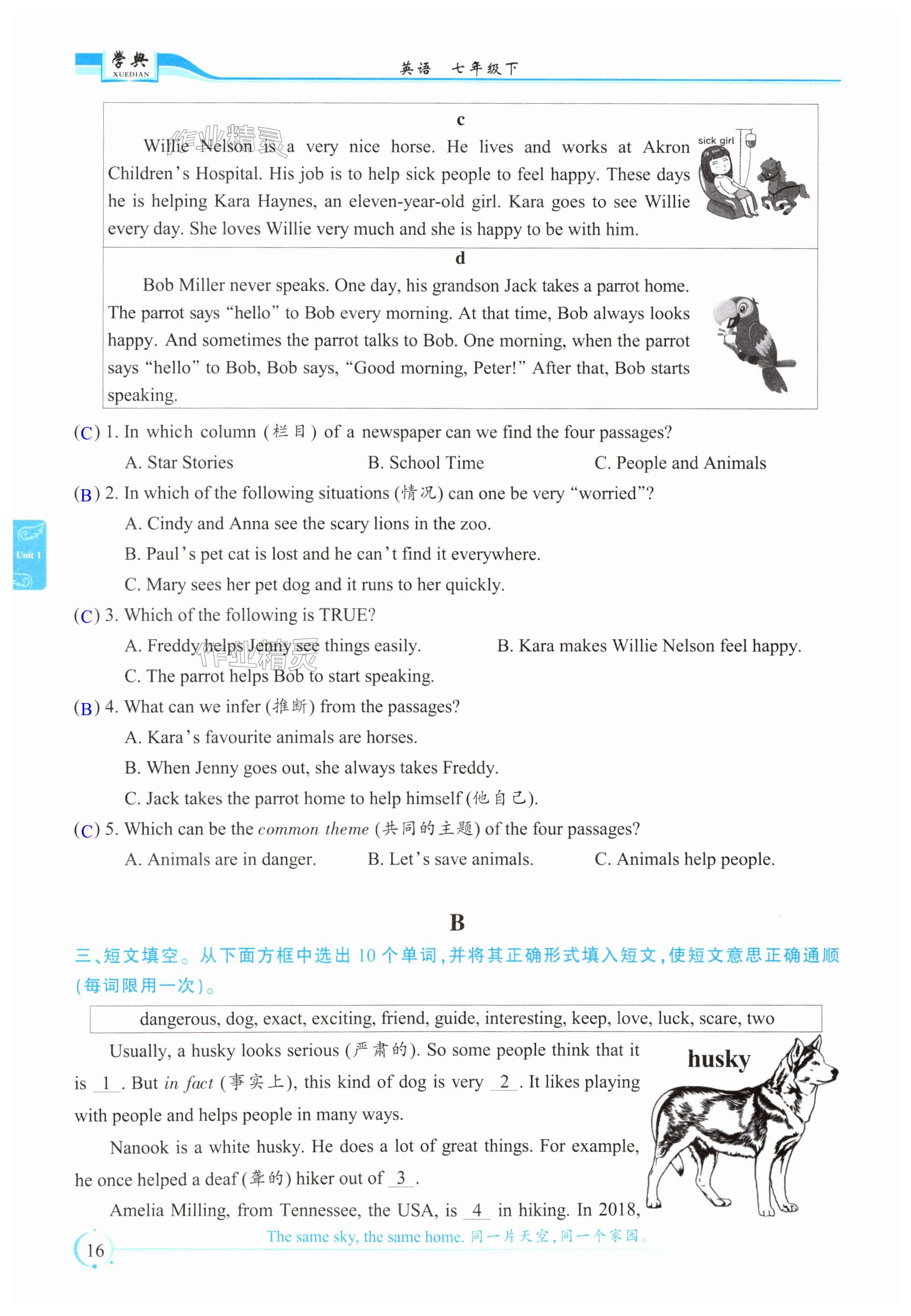 注:目前有些书本章节名称可能整理的还不是很完善,但都是按照顺序排列的,请同学们按照顺序仔细查找。练习册 2025年学典四川七年级英语下册人教版B版 答案主要是用来给同学们做完题方便对答案用的,请勿直接抄袭。